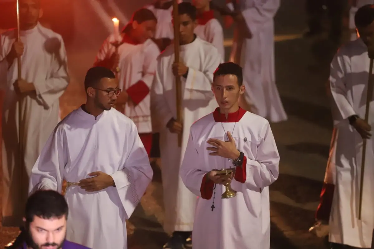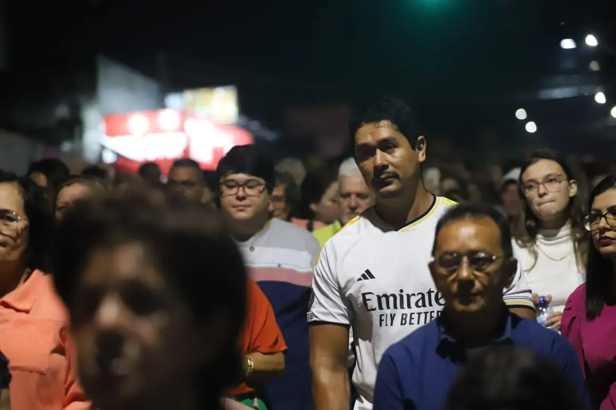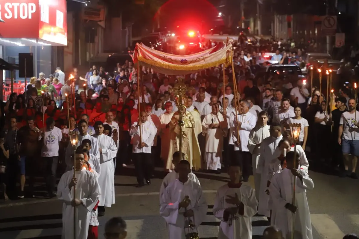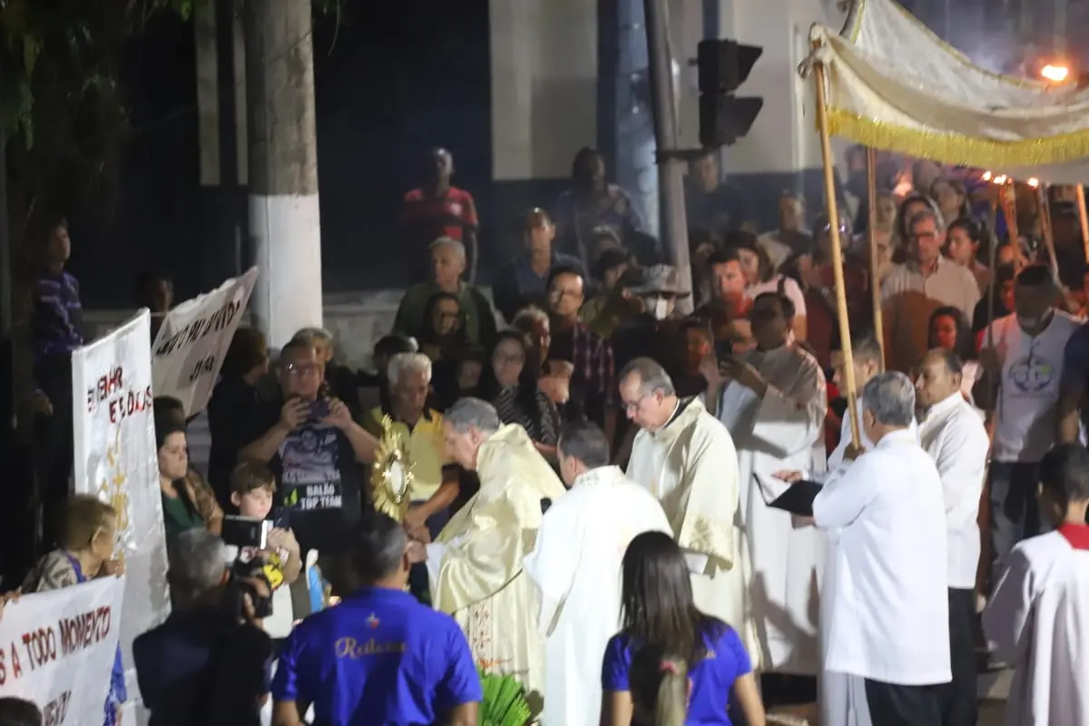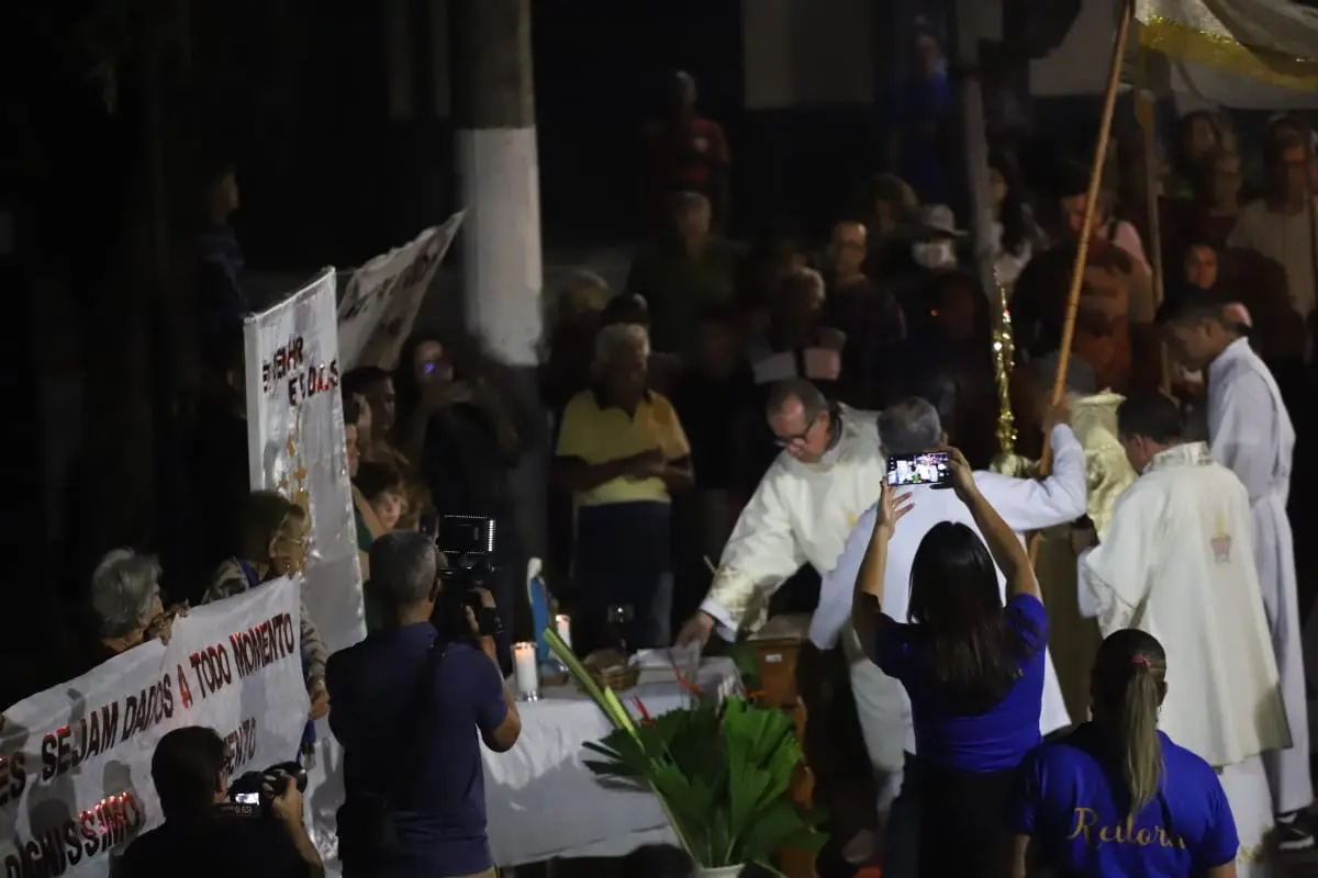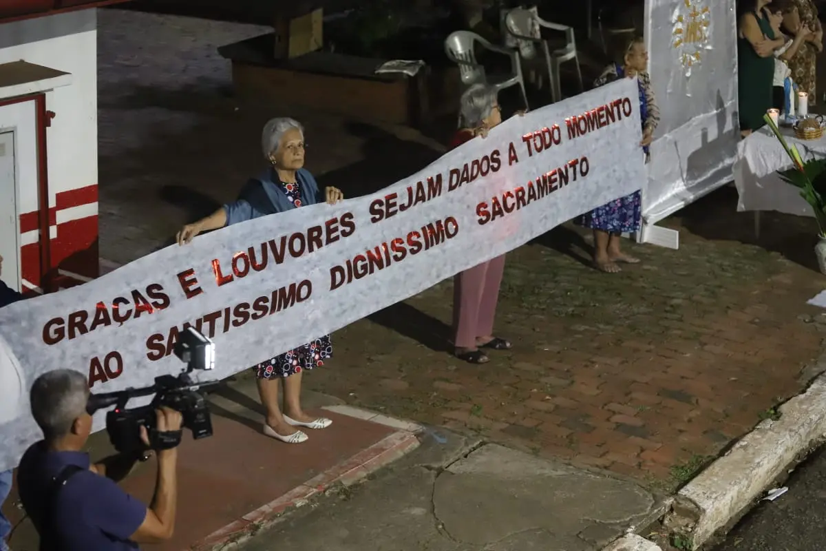 Os mais de 600 fiéis acompanham a procissão de Corpus Christi pelas ruas de Rio Branco na noite desta quinta-feira (30). Com saída da Catedral Nossa Senhora de Nazaré, os católicos seguem em oração e reflexão pelo Centro da capital.