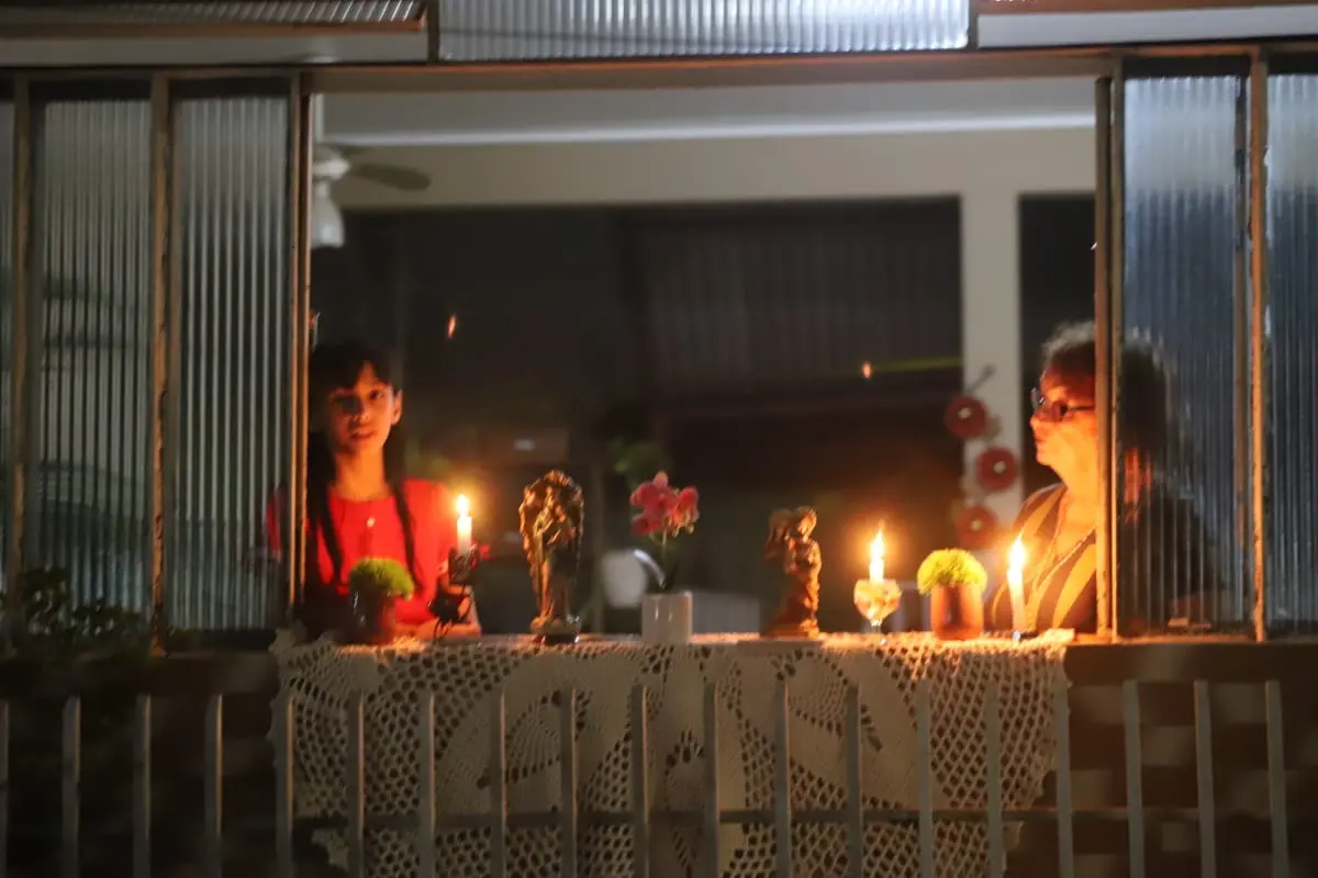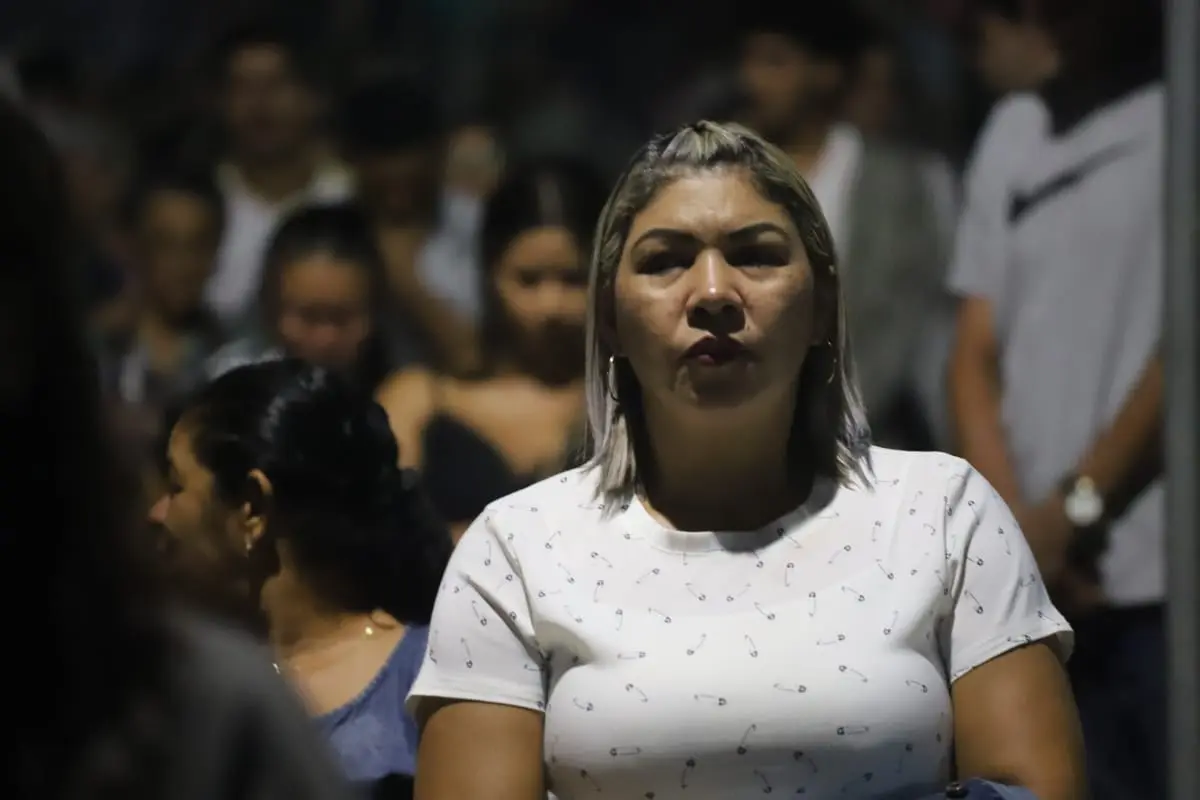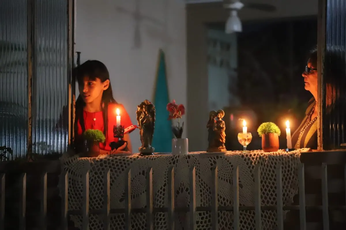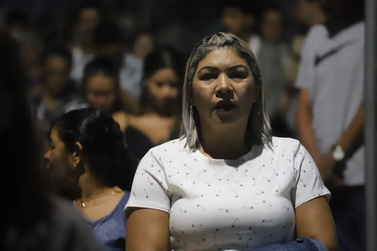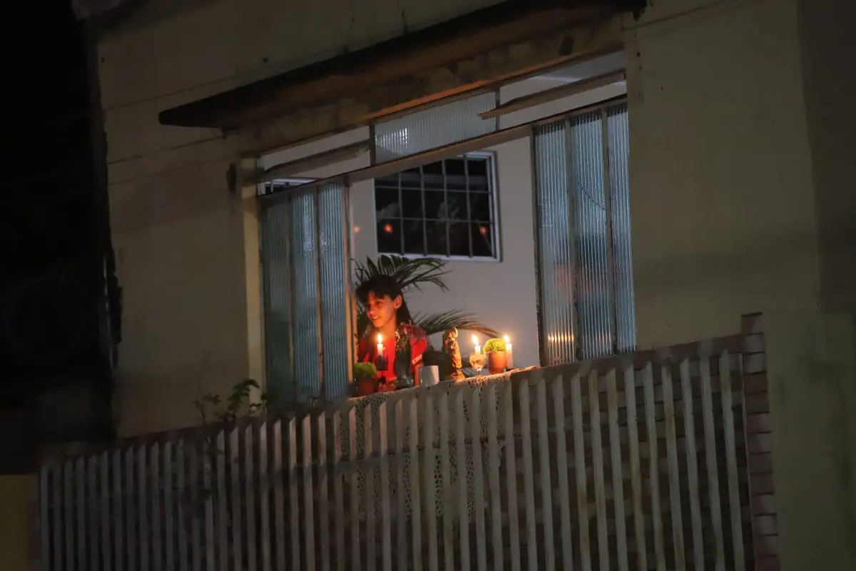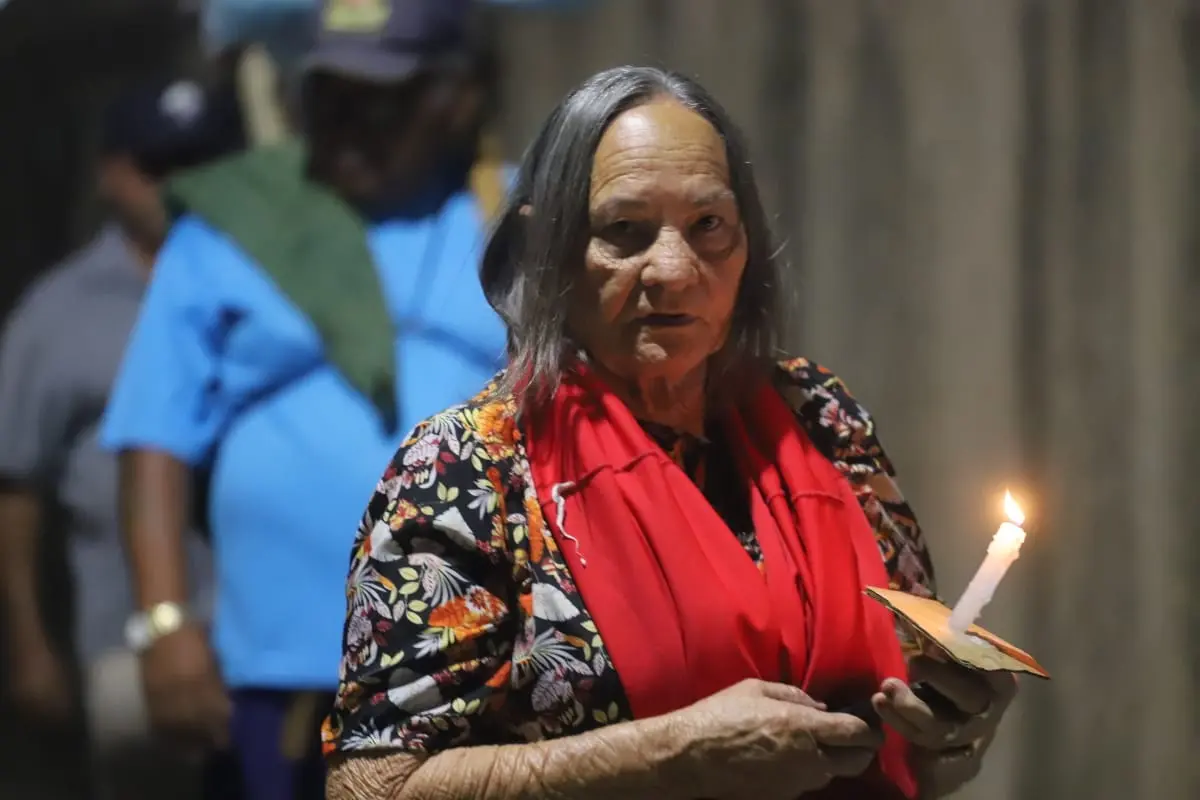 Dentre os presentes estão famílias com adultos, crianças e idosos que saíram de suas casas para acompanhar a procissão.