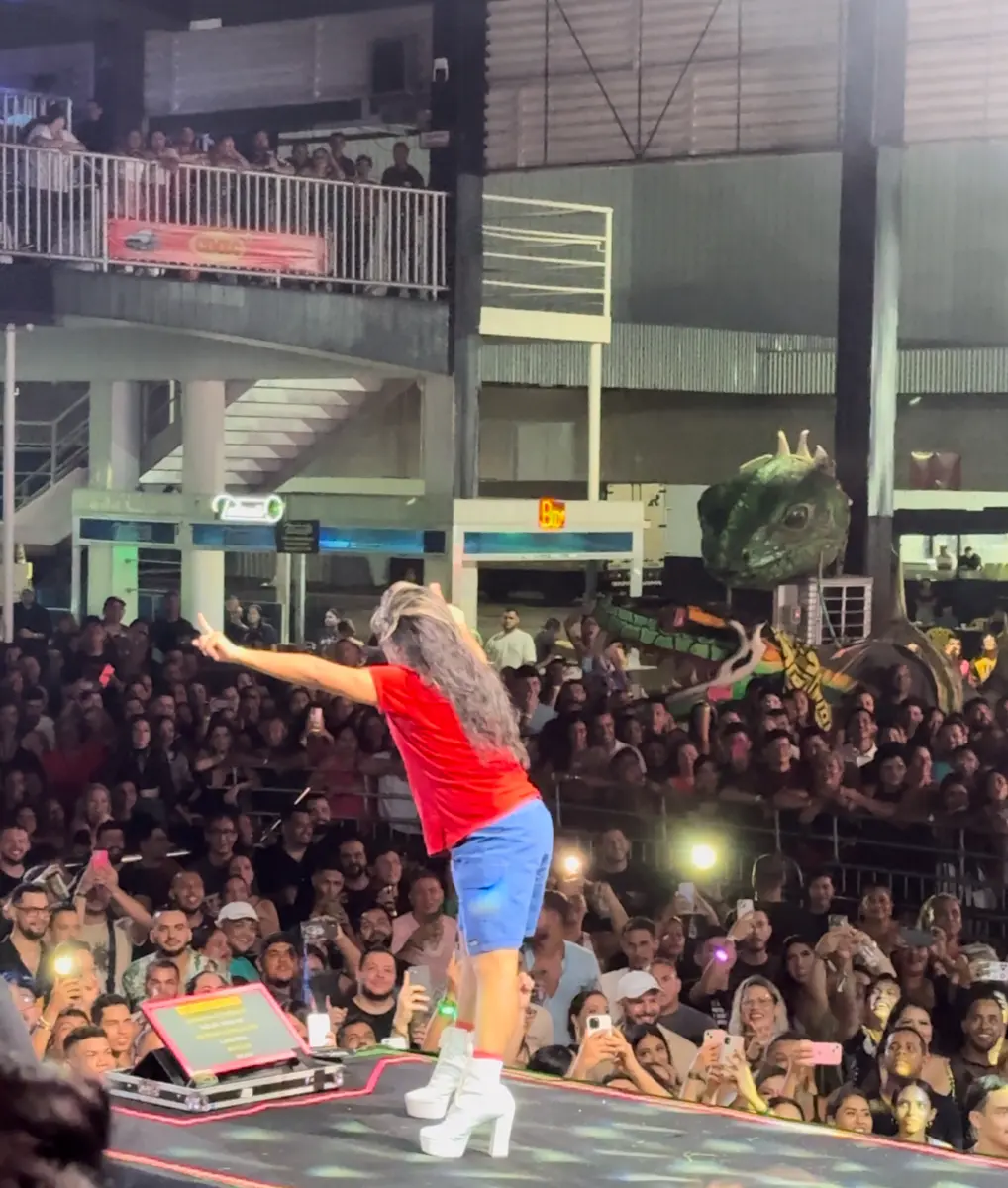 No palco do 1º Festival Amazônia, sediado na casa de eventos Talismã 21 em Porto Velho, Rondônia, um momento especial ocorreu durante a performance da renomada cantora Joelma. Conhecida por sua energia contagiante e estilo marcante, Joelma não apenas entretém multidões, mas também inspira seus fãs a expressarem sua devoção à música de uma maneira única.