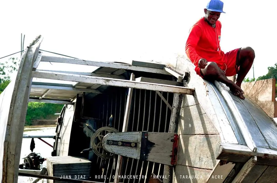 “Me considero marceneiro ‘naval’ só de consertar batelões como esse aqui”, disse o acreano/Foto; Juan Diaz/ContilNet