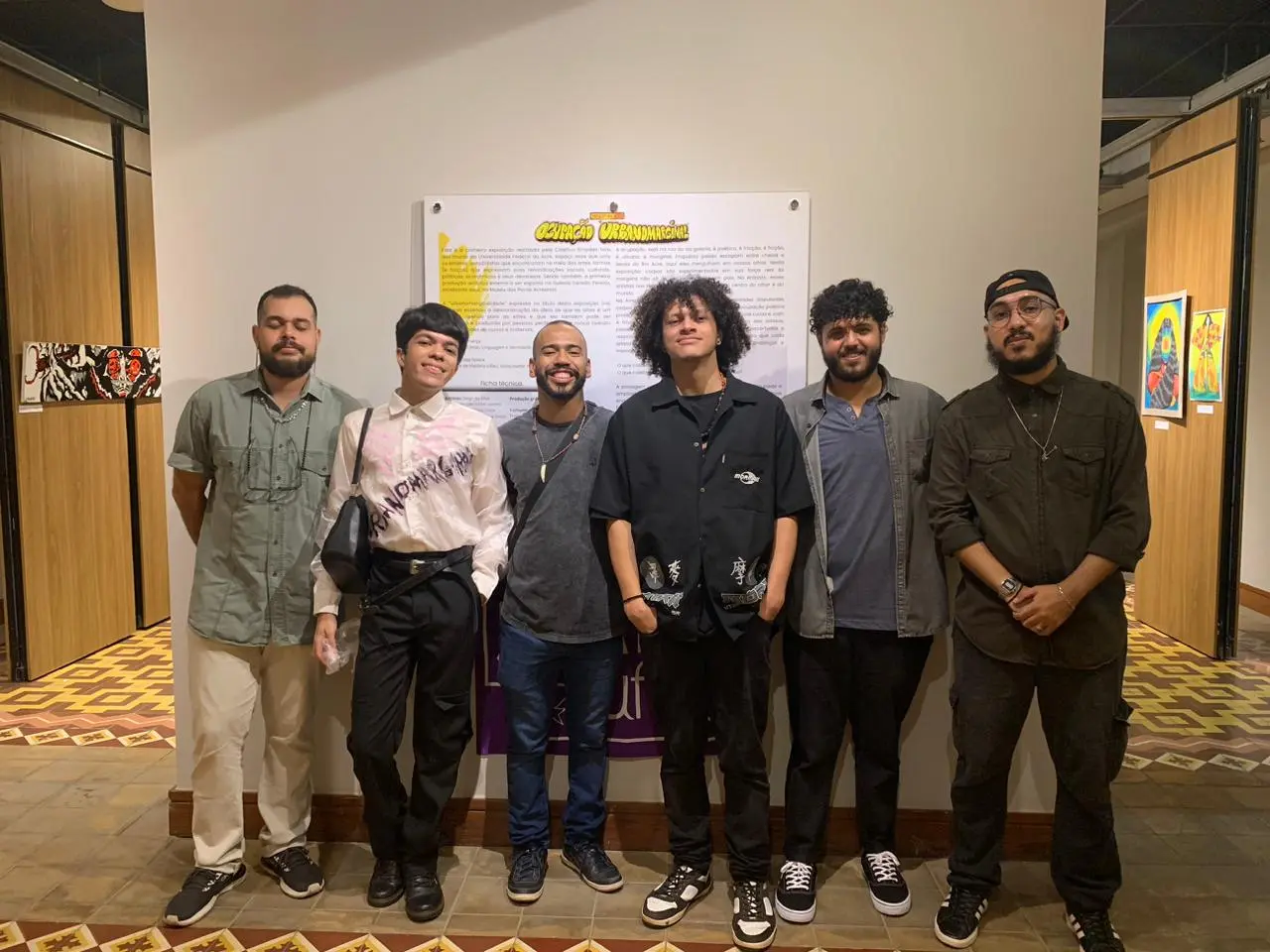 Da esquerda para direita: Diego Fontinele (artista), Jhônatas Natan (Artista), Jardel França (Curador), José Lucas (Artista), Lucas Nobre (Curador), João Victor (Artista)/Foto: Cedida