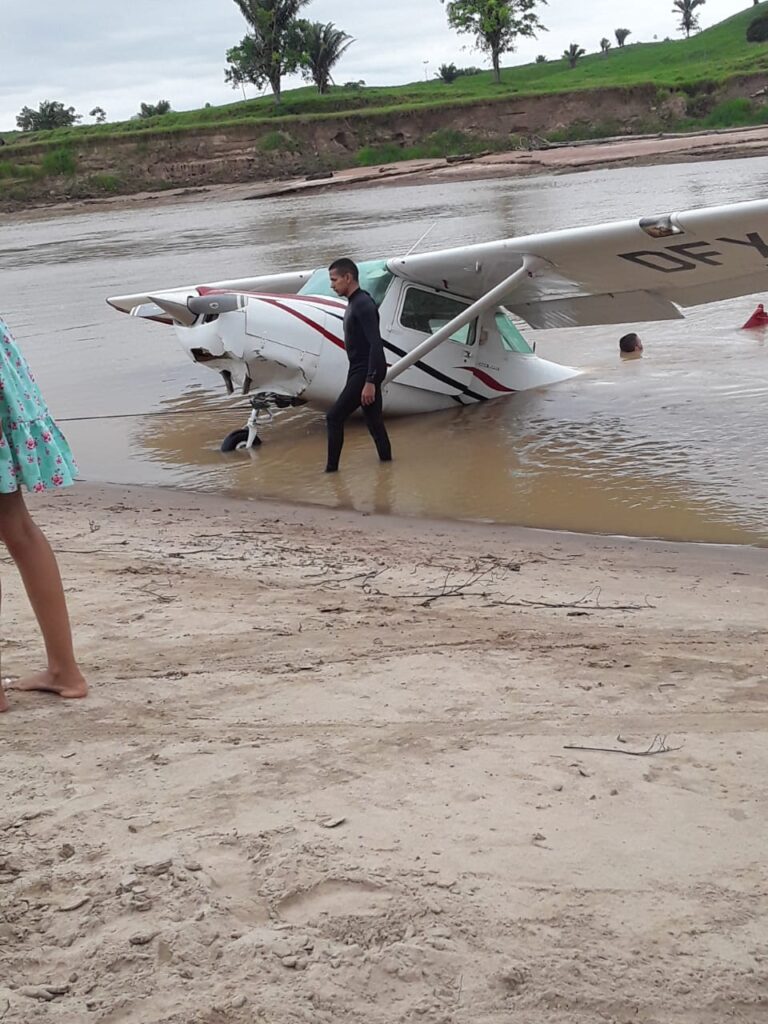 A aeronave precisou ser retirada por moradores e uma equipe do Corpo de Bombeiros, das águas do Rio Tarauacá.