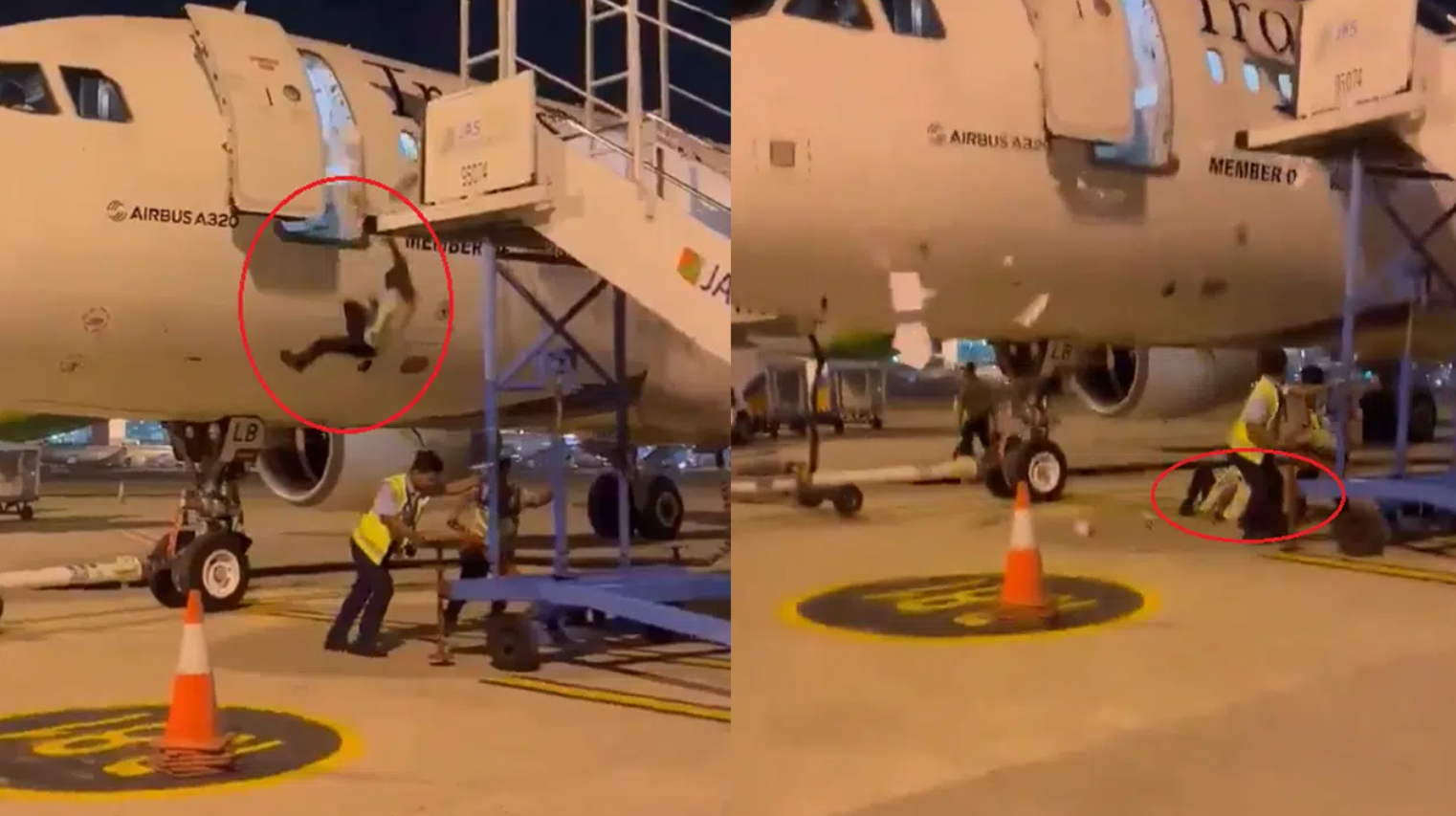 Nessa quarta-feira (15), começou a circular, pelas redes sociais, o vídeo de um funcionário de aeroporto sofrendo uma grave queda de um avião. Nas imagens, é possível ver que duas pessoas retiram a escada de embarque e desembarque da aeronave e, logo na sequência, um colaborador sai do avião, sem perceber que não havia mais nenhuma escada.