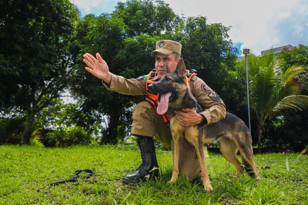 Os animais e os bombeiros são credenciados pelo Comitê de Busca, Resgate e Salvamento de Cães (Conabresc).