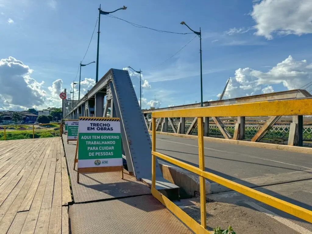 O governo do Acre, por meio do Departamento de Estradas de Rodagem, Infraestrutura Hidroviária e Aeroportuária do Acre (Deracre), está empenhado na limpeza da parte metálica da ponte e na aplicação de um produto anticorrosivo, preparando-a para uma nova camada de pintura.