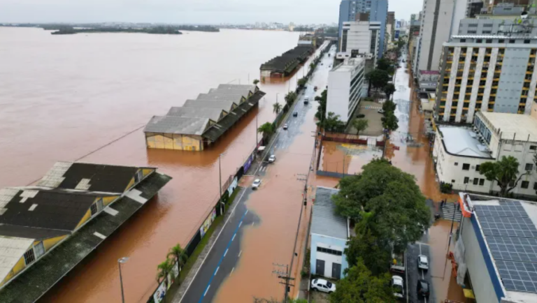 O lago Guaíba alcançou a impressionante marca de 4,77 metros na noite desta sexta-feira (3) em Porto Alegre, no Rio Grande do Sul, atingindo a maior cheia da história da cidade. A marca anterior era um centímetro menor (4,76m), registrada em 1941.