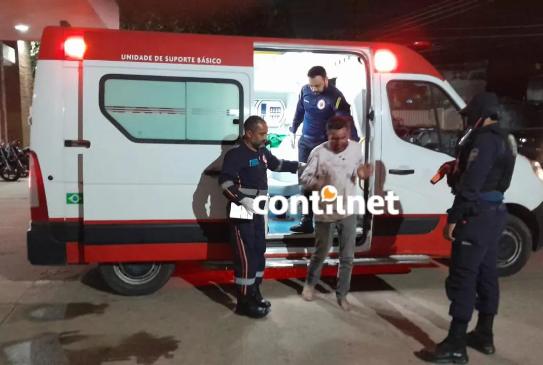O homem foi conduzido para o PS com a escolta da Polícia Militar e, depois que receber alta, deverá responder pelo crime de ameaça à esposa, enquadrado supostamente na lei Maria da Penha.