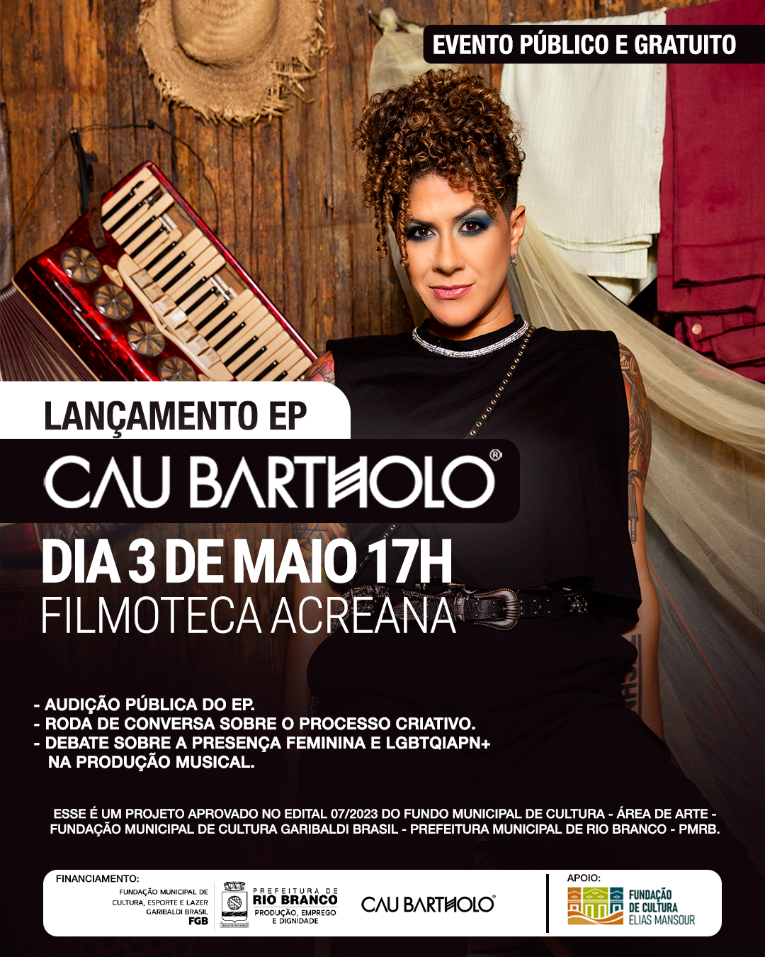 Acontece o evento de avaliação pública e gratuita do projeto, na Filmoteca Acreana, incluindo a audição do EP, roda de conversa sobre o processo criativo e debate sobre a presença feminina e LGBTQIAPN+ no mercado de produção musical em Rio Branco.