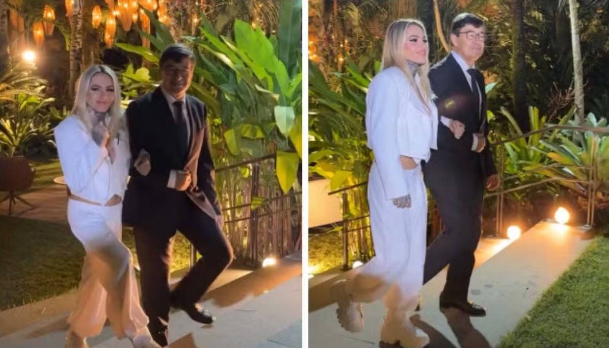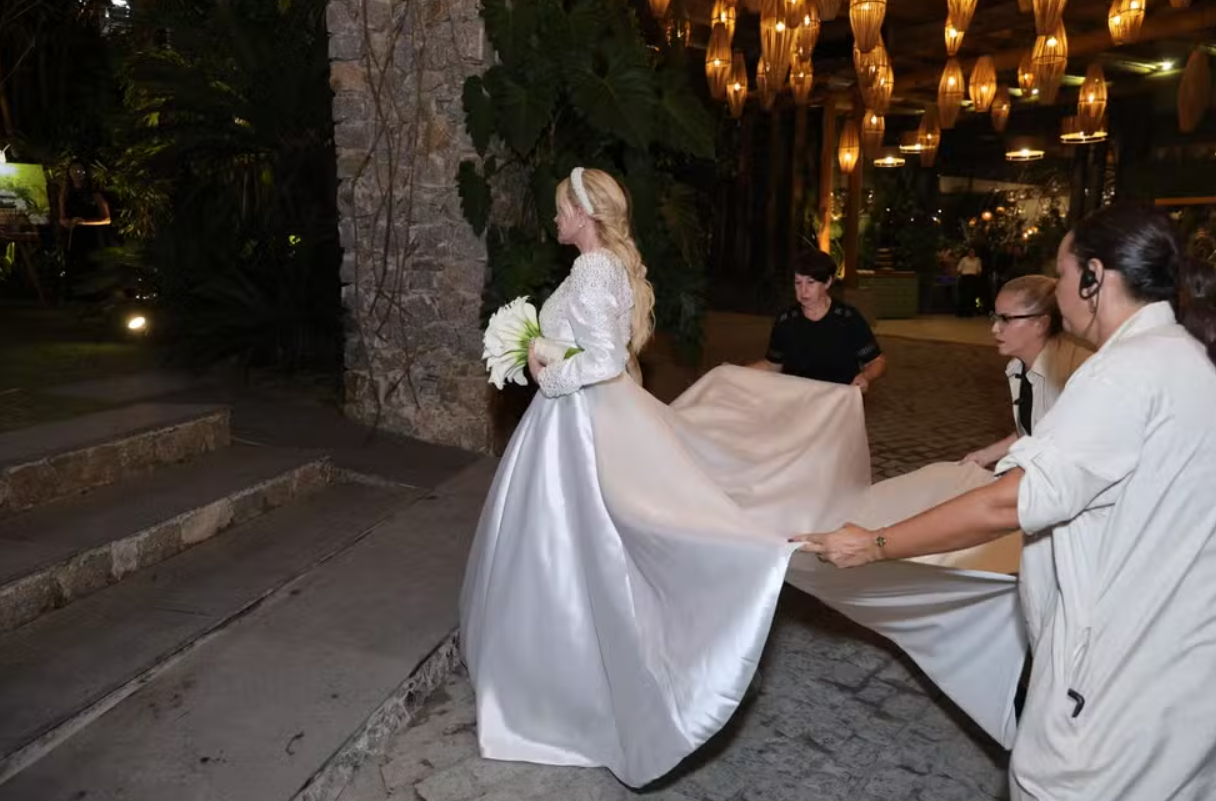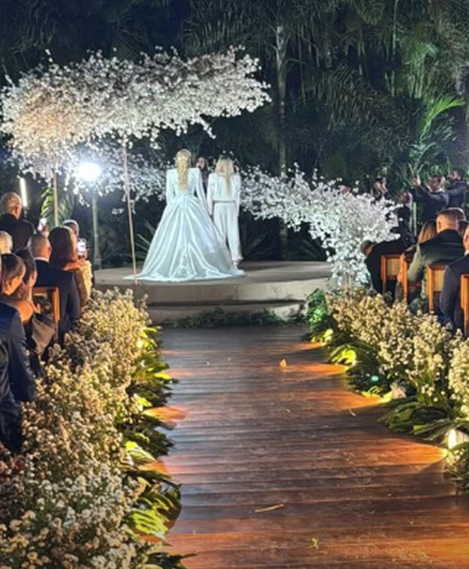 Bárbara Evans, filha da apresentadora, ficou responsável por levar a mãe até o altar. Já o filho, Armando Aguinaga, e a neta, Valentina, não puderam comparecer ao evento porque moram na Espanha e estão tirando a nacionalidade espanhola.