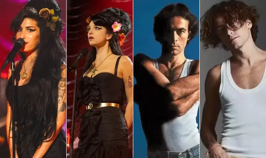 Amy Winehouse & Marisa Abela; Ney Matogrosso e Jesuíta Barbosa — Foto: Fotos de divulgação