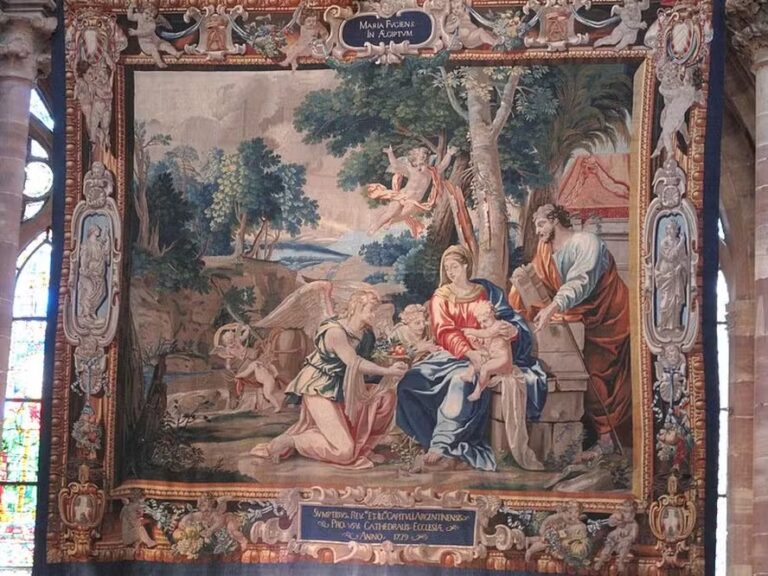 Tapeçaria da Fuga para o Egito na nave da catedral de Estrasburgo, França — Foto: Tangopaso
