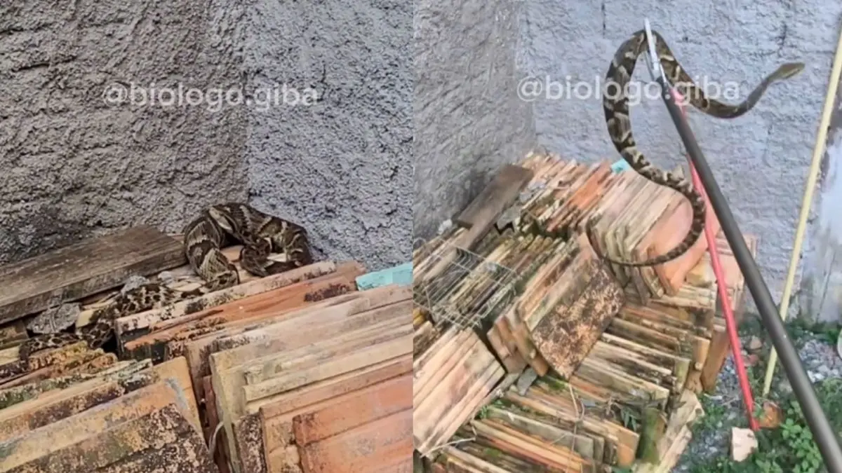 A serpente foi encontrada descansando sobre um paredão de telhas. Segundo o biólogo, esse tipo de animal é comum na região. O que surpreendeu mais foi o tamanho, já que jararacas costumam medir apenas 1 metro, enquanto a encontrada pela família ultrapassava essa medida.