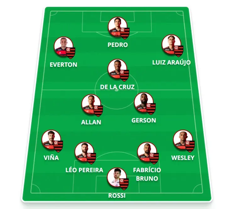 Provável escalação: Rossi, Wesley, Fabrício Bruno, Léo Pereira e Viña; Allan, Gerson e De la Cruz; Luiz Araújo (Bruno Henrique), Everton Cebolinha e Pedro.