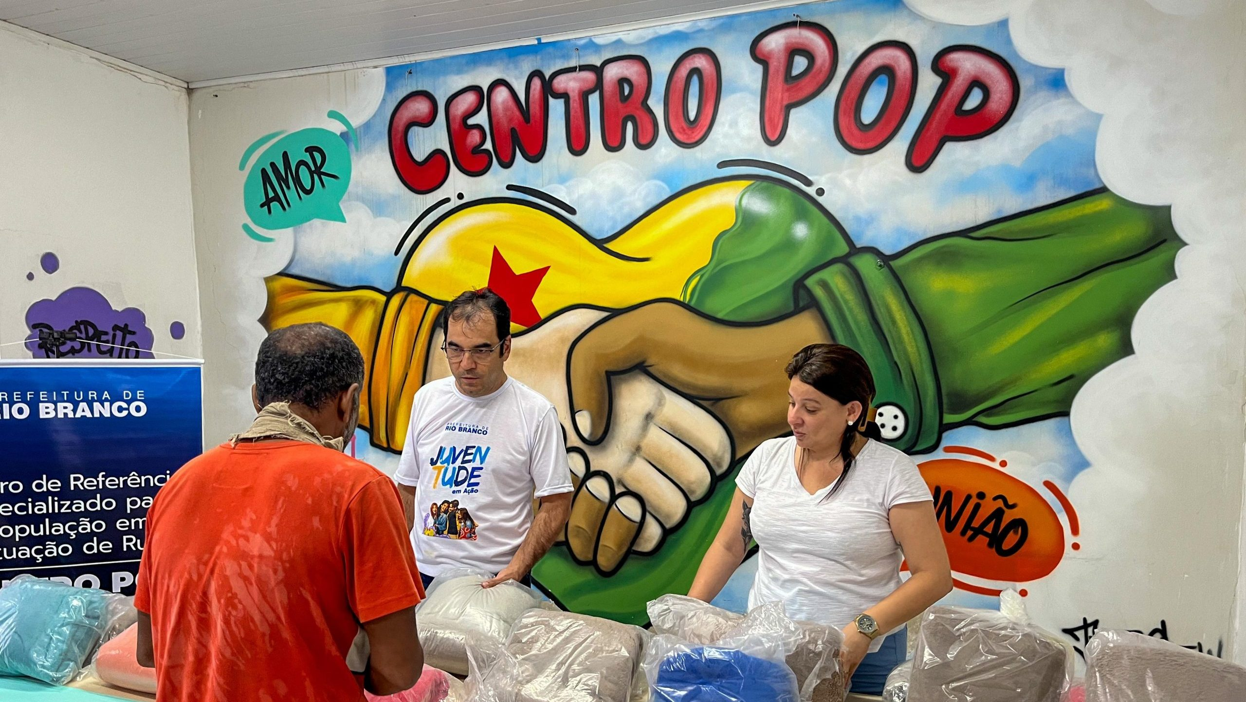 Para auxiliar as pessoas em situação de rua da capital acreana, a prefeitura da capital, através da secretaria municipal de Assistência Social e Direitos Humanos (SASDH) e a coordenadoria municipal de Defesa Civil, distribuíram cobertores, na sede do Centro de Referência Especializado para Pessoas em Situação de Rua (Centro Pop), localizado no centro da cidade.