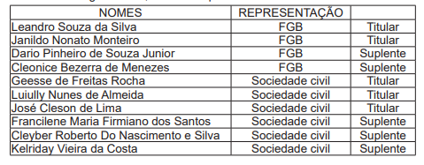 A nomeação dos membros foi publicada no Diário Oficial do Estado (DOE), na edição desta quinta-feira (23), e assinada pelo diretor-presidente da FGB, Klowsbey Viegas Pereira.