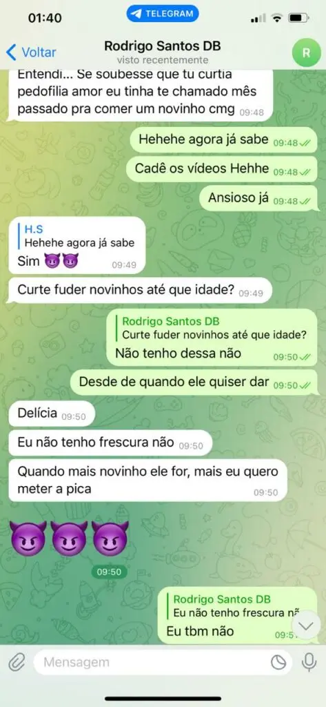 O Portal CM7 Brasil teve acesso exclusivo aos prints, que mostram as mensagens e ações demoníacas destes pedófilos miseráveis.