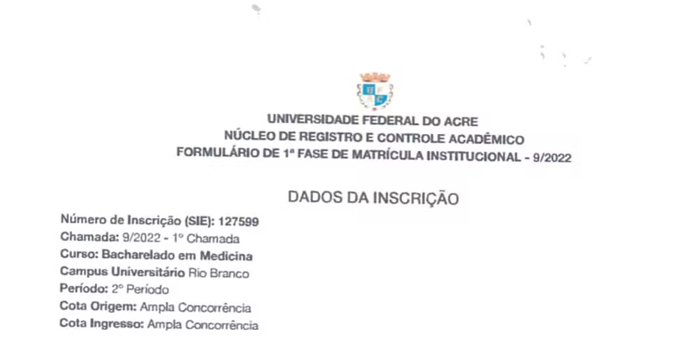 “A Ufac recebeu a denúncia por meio da Ouvidoria e instaurou um processo de investigação. Foi apurado que a suspeita havia entrado com documentos falsos no processo de vagas residuais do curso de medicina. Como resultado da apuração, foram tomadas duas medidas: o cancelamento da matrícula e a instauração de um Processo Administrativo Disciplinar (PAD). O processo foi enviado para investigação do Ministério Público Federal (MPF) e Polícia Federal (PF) e a universidade aguarda o resultado para que novas medidas possam ser adotadas.”