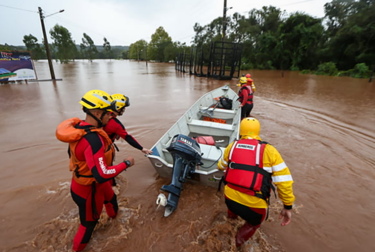 A Força Aérea Brasileira (FAB) auxilia no resgate das vítimas desde terça-feira (30/4). As aeronaves ajudam no socorro de famílias que estão ilhadas, visto que muitas pontes foram destruídas e ruas estão totalmente alagadas.