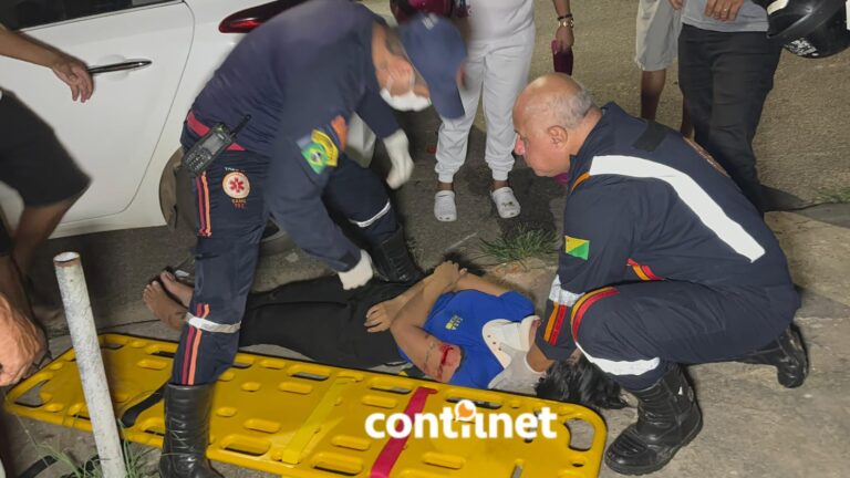 A motociclista Carla Vitória Alves Barros, 22 anos, ficou gravemente ferida após ser fechada por um carro e bater em dois carros, na noite desta terça-feira (7), ao lado do pronto-socorro de Rio Branco, na Rua Hugo Carneiro, no bairro do Bosque.