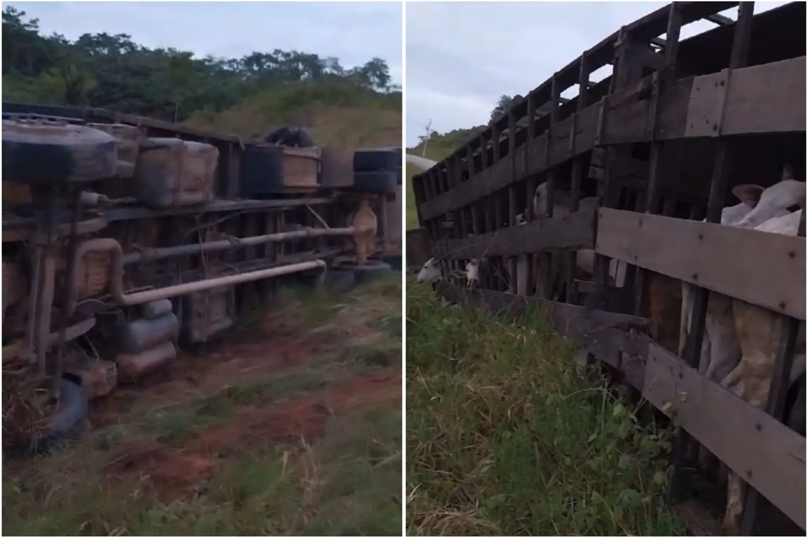 O motorista do caminhão não se machucou e contou que perdeu o controle ao desviar um dos buracos e acabou tombando na lateral da pista. O trabalho de retirada dos animais durou horas, com utilização de motosserra para liberar os bois que ficaram presos dentro da gaiola do veículo.