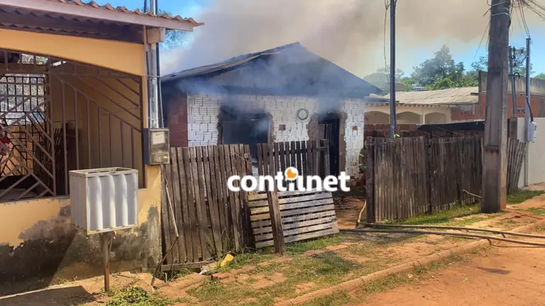 Um incêndio de grandes proporções destruiu completamente uma residência na manhã desta quarta-feira (22), na rua Santa Terezinha, no bairro Conquista, em Rio Branco.