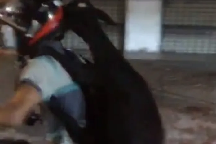 No vídeo, o autor da gravação está na garupa de outra moto e questiona se realmente é um bode e dá risada da situação: “Isso não é um bode não, né? Deixe dessa”, diz o homem.