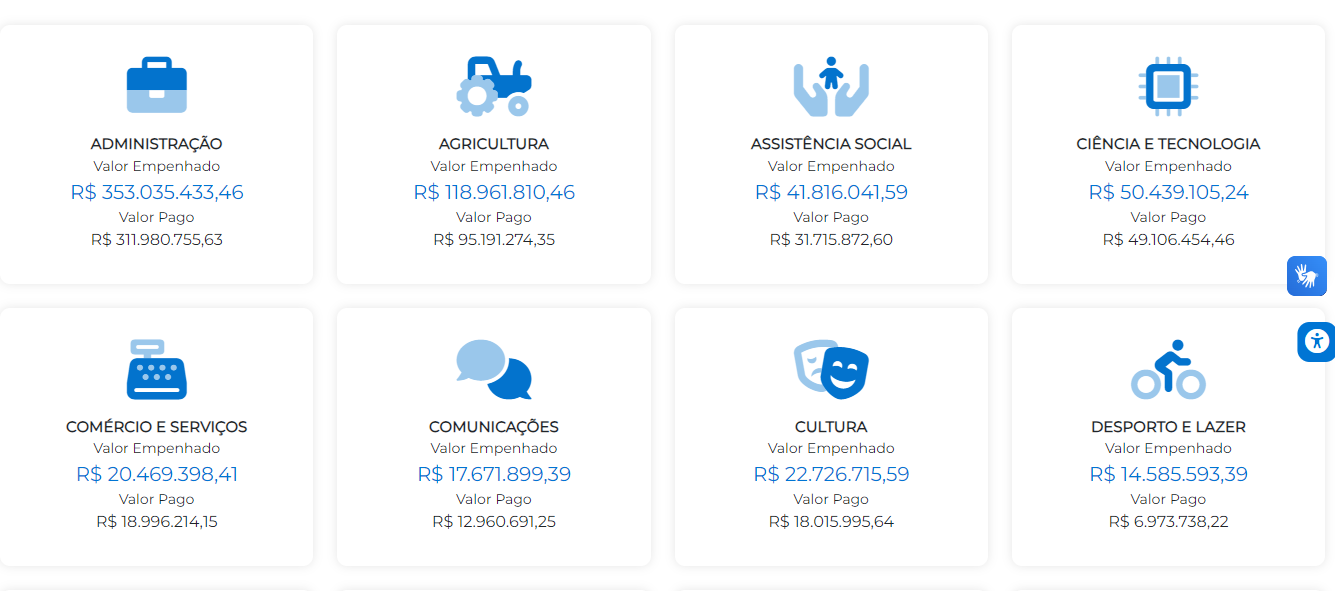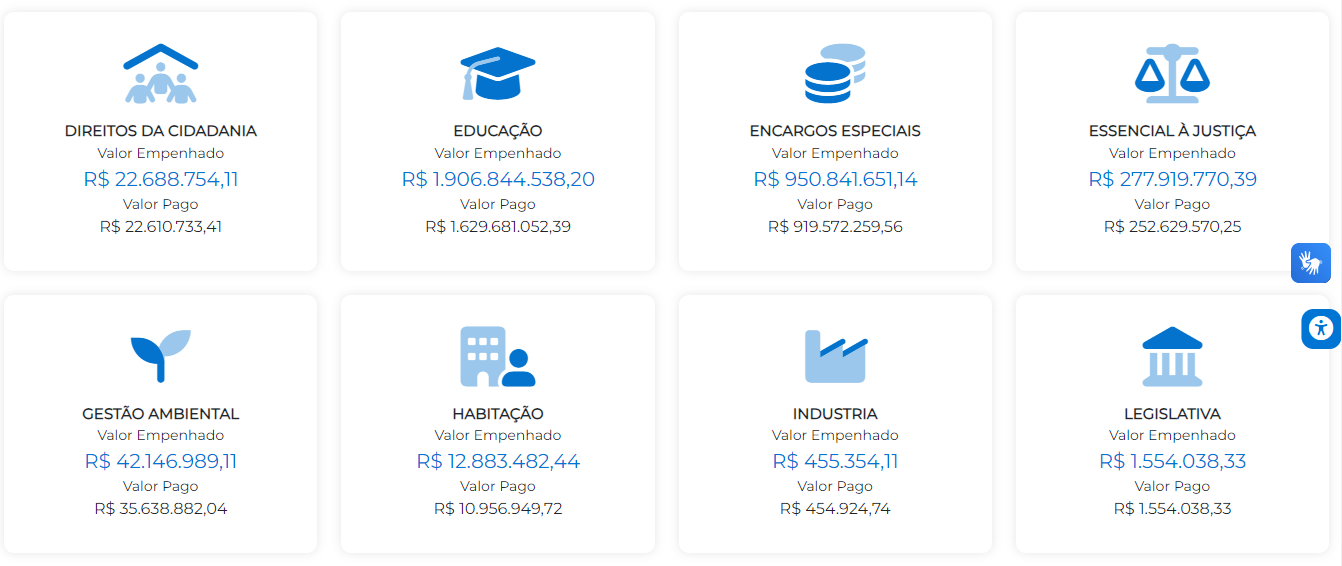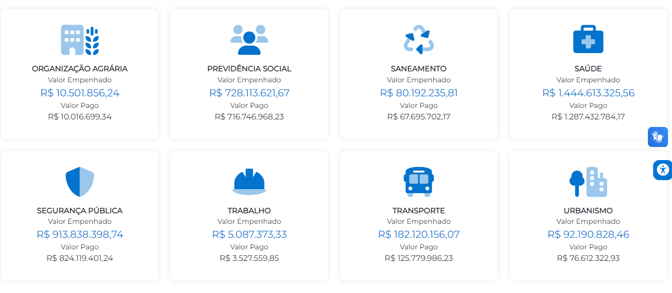 Através dos dados disponíveis no portal da transparência, é possível ter acesso aos montantes empenhados em cada setor do governo, assim como os valores que já foram pagos até o momento.