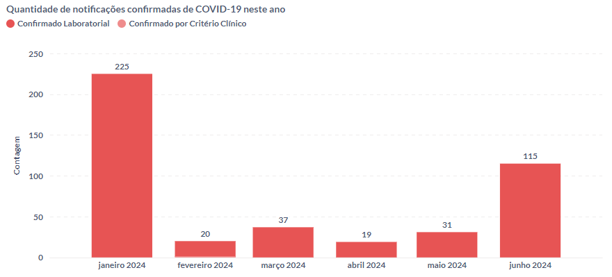 Um novo pico de casos de Covid-19 vem atingindo o estado do Acre, sendo o mês de junho o segundo com mais casos, totalizando 115 confirmações, no ano de 2024, sendo superado apenas por janeiro, quando foram registrados 225.