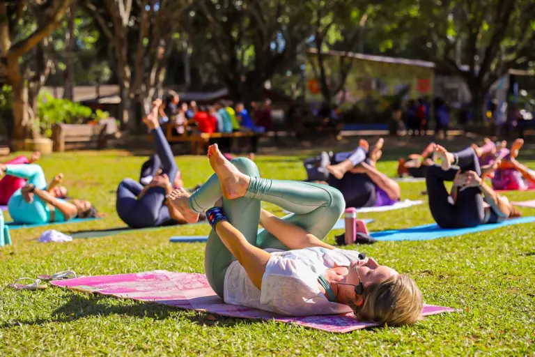 E neste domingo no Horto Florestal será comemorado o dia internacional da Yoga. A programação é gratuita e contará com aula de yoga ao ar livre, meditação, apresentação de tecido acrobático, vacinação, orientações médicas, feirinha e um café da manhã compartilhado.
