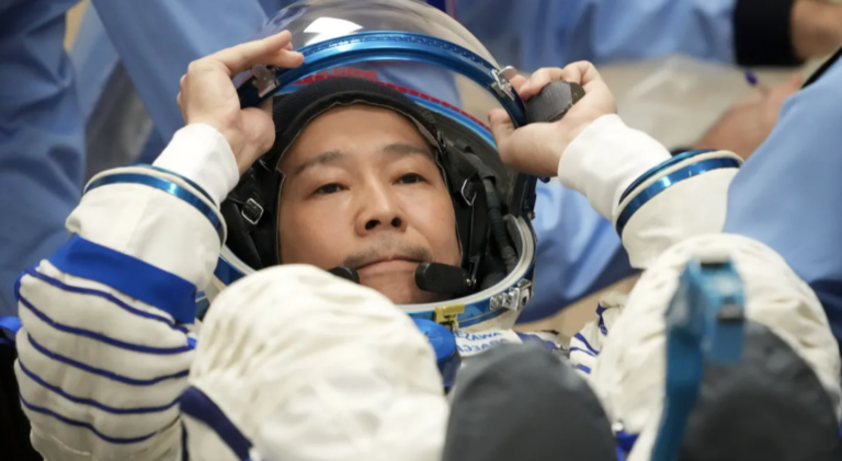 O empresário Yusaku Maezawa em preparação para o voo que o levou até a Estação espacial Internacional, em 2021/Foto: Pavel Pavlov/Anadolu Agency via Getty Images