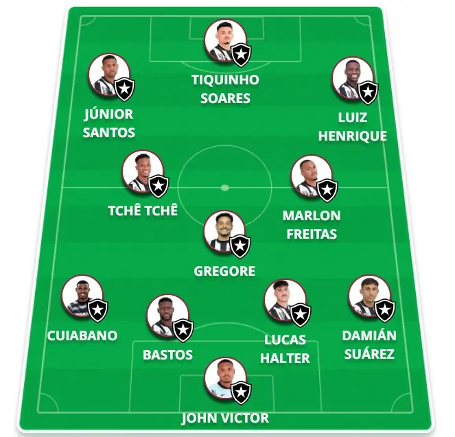 Escalação provável: John, Damián Suárez, Halter, Bastos e Cuiabano; Marlon Freitas, Gregore e Tchê Tchê; Luiz Henrique, Júnior Santos e Tiquinho Soares.