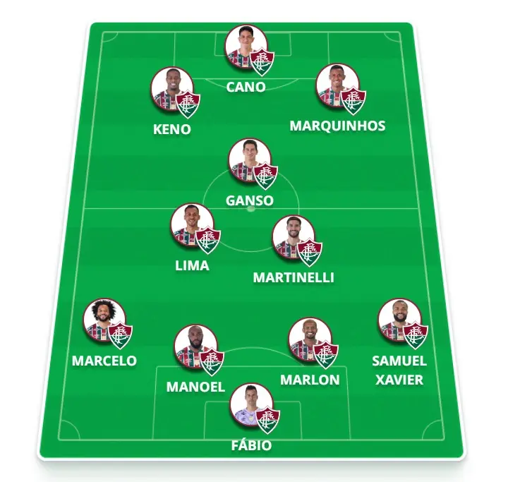 Escalação provável: Fábio; Samuel Xavier, Manoel, Marlon, Marcelo; Martinelli, Lima, Ganso; Marquinhos, Keno e Cano.
