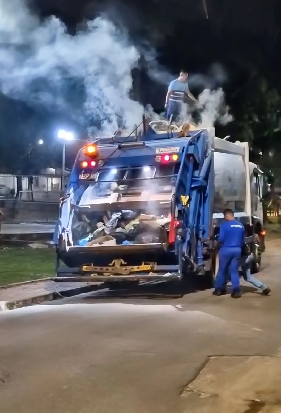 Caminhão de coleta de lixo em chamas no Conjunto Tangará, em Rio Branco, Acre, no último sábado/Foto: ReproduçãoOs internautas sugeriram diversas teorias sobre o que poderia ter provocado o fogo. Entre as hipóteses levantadas, mencionaram a mistura de produtos químicos descartados, a presença de uma ponta de cigarro acesa e até mesmo uma bateria de celular jogada no lixo. No entanto, até o momento, não se sabe ao certo o que ocasionou o incêndio.
