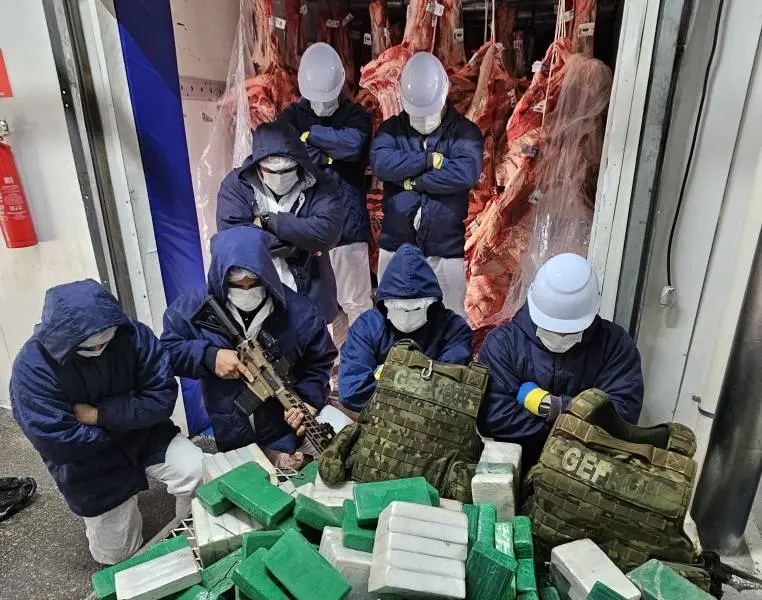 Um vilhenense de 43 anos foi preso em flagrante na manhã da última terça-feira na BR-364, próximo à cidade de Cáceres (MT), após o caminhão câmara fria que ele estava dirigindo ser abordado durante ação conjunta envolvendo GEFRON, PMMT-CR12, Exército Brasileiro e ABIN, no combate aos crimes na fronteira Brasil/Bolívia. Após um dos cães usados no procedimento detectar indícios de droga junto com a carne que era transportada, o veículo foi levado até um frigorífico para uma inspeção mais detalhada.