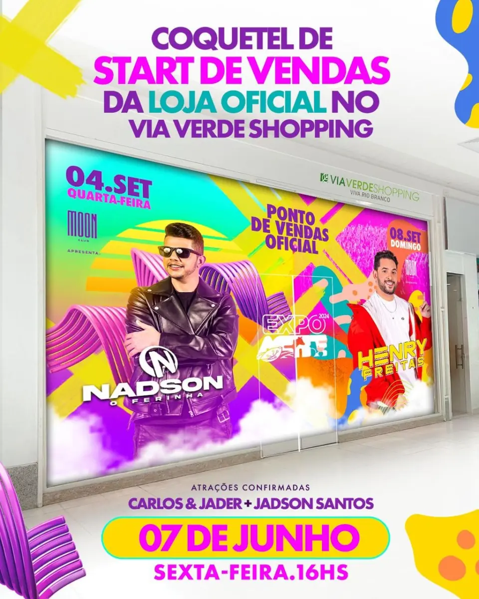 A empresa acreana Moon Club anunciou o início das vendas dos ingressos para os shows de Henry Freitas e Nadson o Ferinha, atrações confirmadas para a Expoacre 2024. O lançamento das vendas será nesta sexta-feira (7), a partir das 16h, com um coquetel especial no Via Verde Shopping.