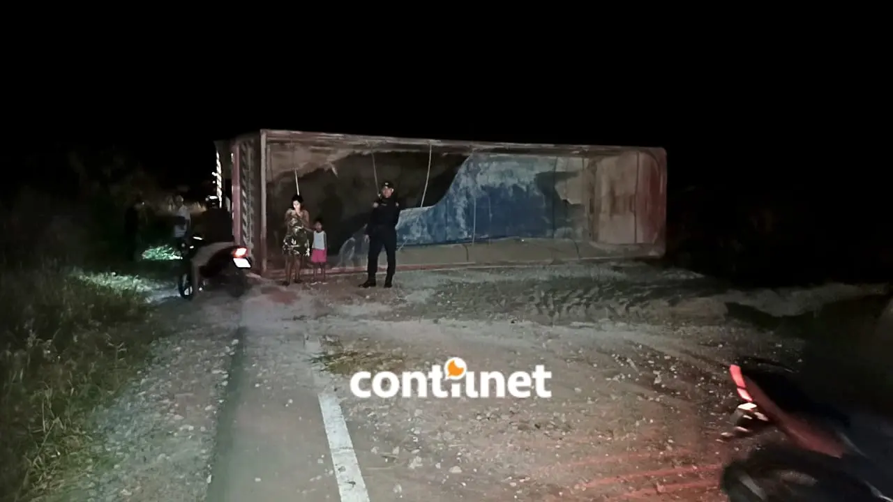 Quatro pessoas ficaram levemente feridas na noite desta segunda-feira (10), após uma carreta bitrem tombar e interditou totalmente a BR-364, no km 23, no município do Bujari, no interior do Acre.