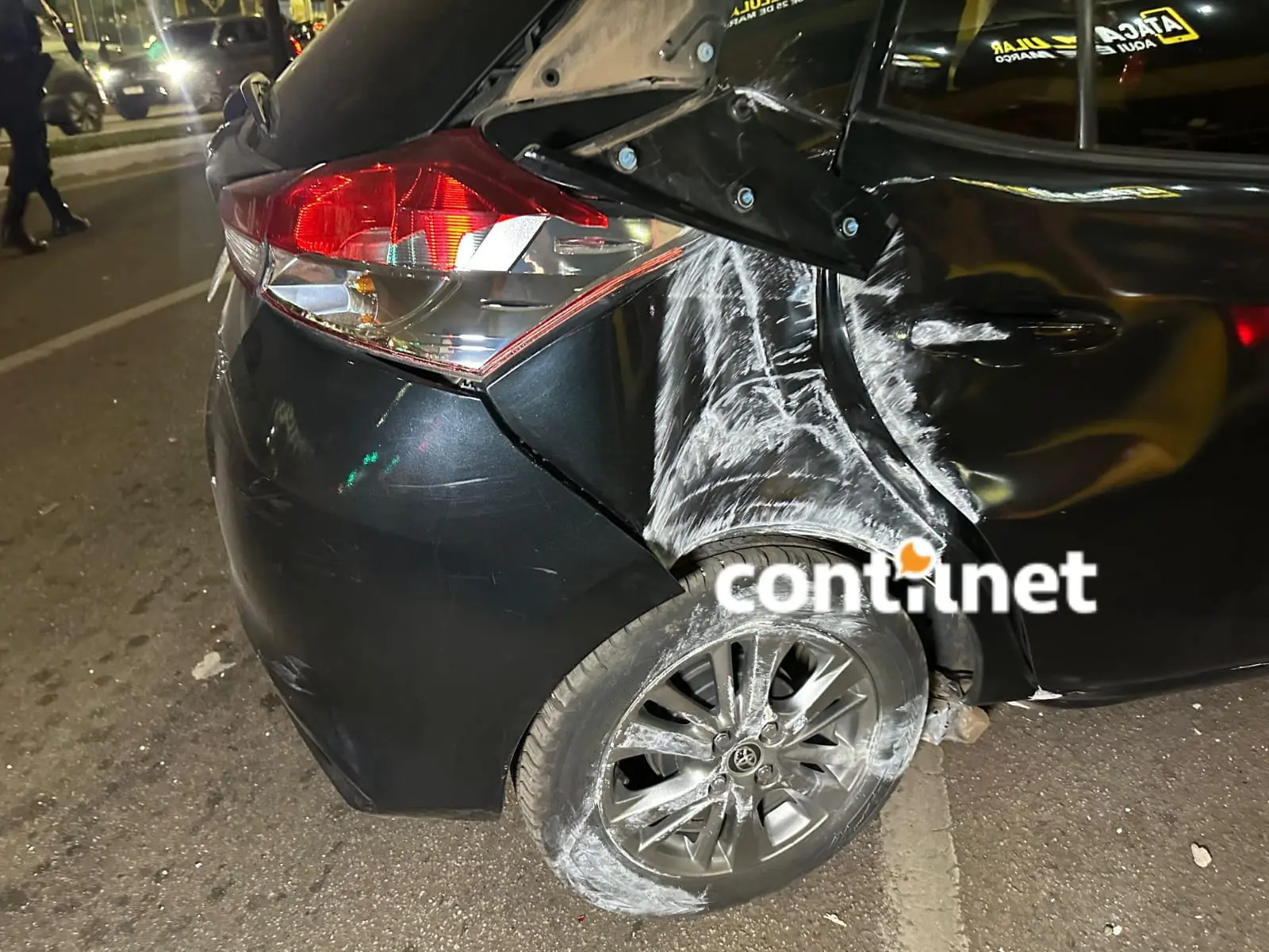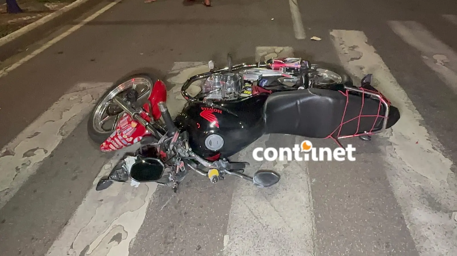 O entregador Oziel acabou colidindo na traseira do veículo Yaris e sendo arremessado a uma distância de 30 metros, parando ao lado da moto dele que também foi arrastada e sofrendo uma fratura exposta na perna direita com rompimento de artéria.