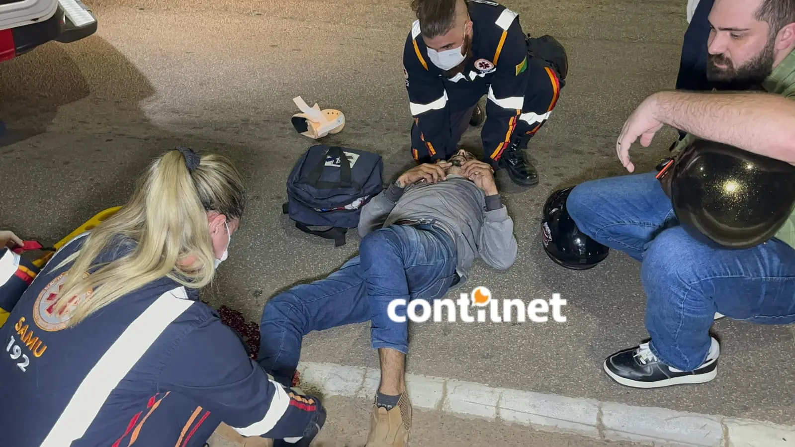 Equipe do SAMU presta atendimento ao entregador Oziel da Silva Afon, 33 anos, ferido gravemente/Foto: ContilNet