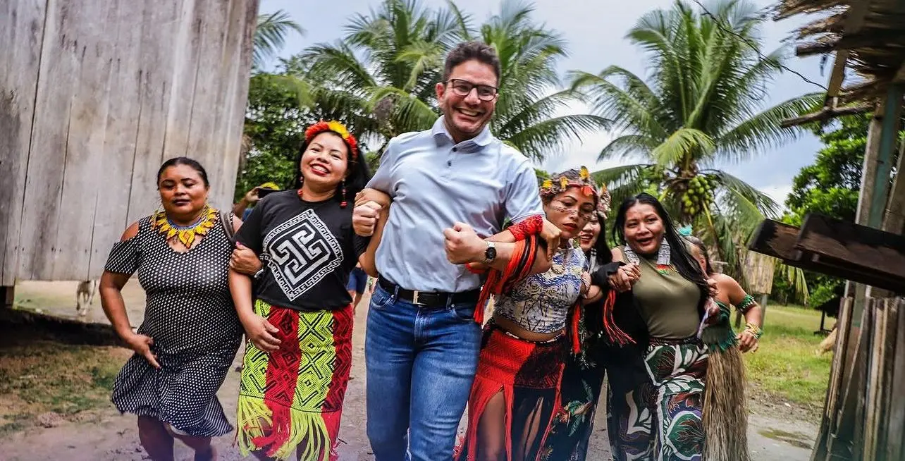 O governador Gladson ao lado de indígenas em aldeia no Acre/Foto: Reprodução
