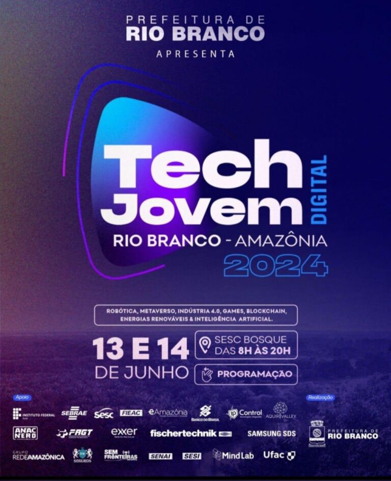 O prefeito de Rio Branco, Tião Bocalom, anunciou na manhã desta terça-feira (11), a feira de tecnologia Tech Jovem Amazônia Digital. O evento vai acontecer nos dias 13 e 14 deste mês, no Sesc Bosque.