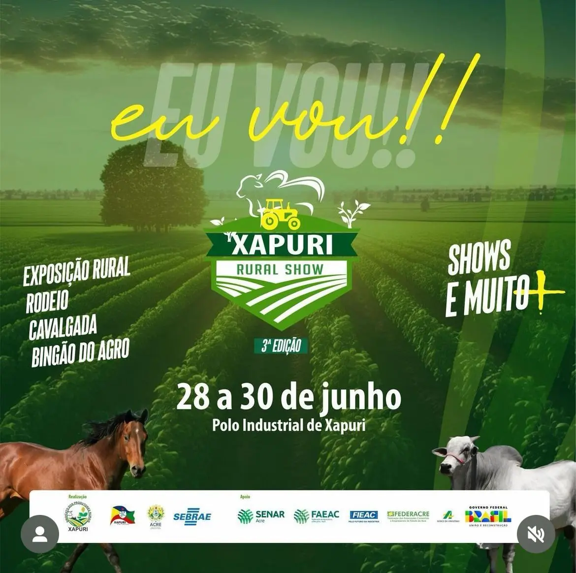 A 3ª edição do Xapuri Rural Show acontece entre os dias 28 de 30 de junho de 2024 e deve contar com shows, rodeio, exposições e investidores internacionais.