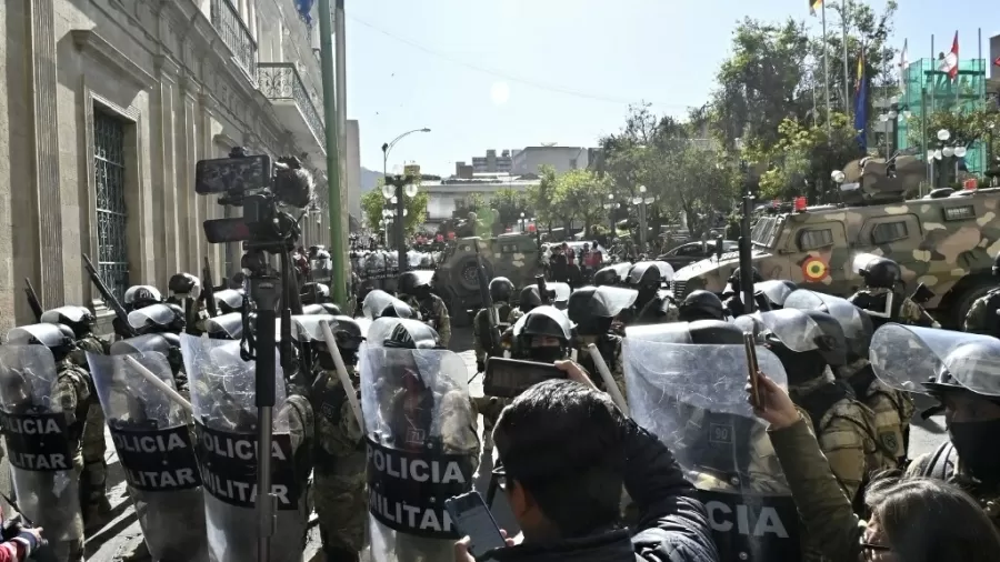 Militares se mobilizam em frente à sede do governo boliviano/ Foto: Aizar Raldes/AFP