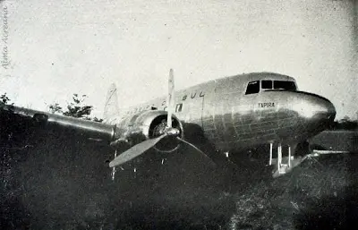 DC-3 acidentado em pista de pouso no Acre; pousos mal sucedidos aconteciam com frequência/Foto: Domínio Público