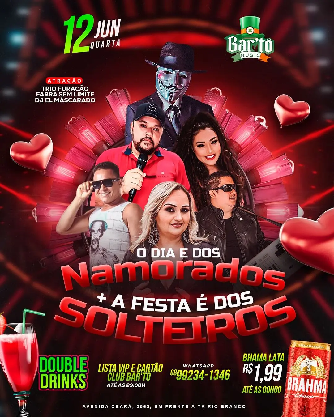 O amor está no ar… a época mais romântica do ano chegou! O Dia dos Namorados acontece na próxima quarta (12). E os apaixonados de Rio Branco que ainda estão se planejando para sair com a pessoa – ou pessoas, seja lá a forma que você curte – que amam, já podem consultar as várias opções de programas para se fazer nesse dia.