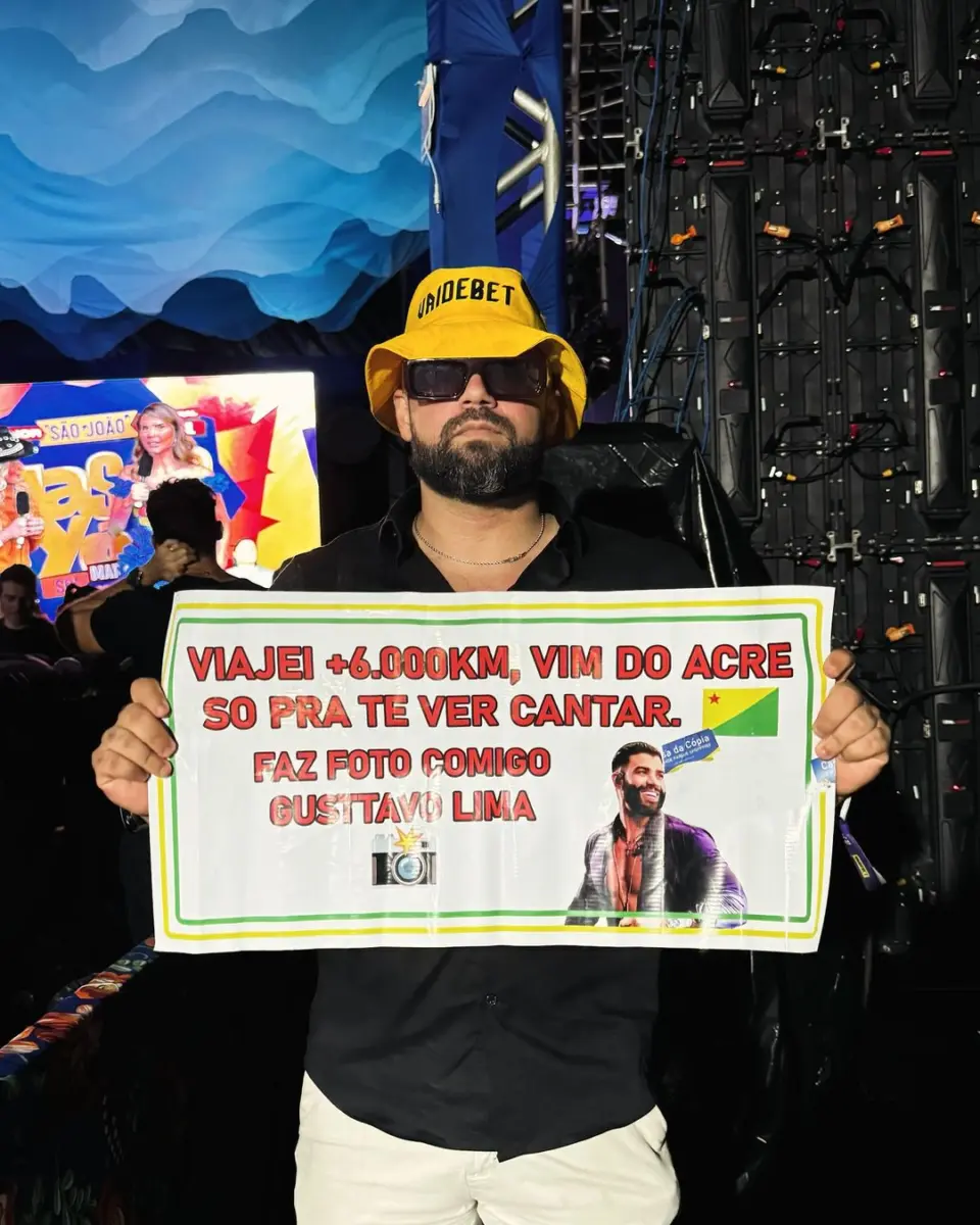 O convite especial veio após a família exibir um cartaz tocante: “VIAJEI +6.000KM, VIM DO ACRE SÓ PRA TE VER CANTAR. FAZ FOTO COMIGO GUSTTAVO LIMA”. Em meio à comoção dos fãs presentes, Gusttavo interrompeu a apresentação para reconhecer e celebrar a dedicação dos Aguiar à sua música.