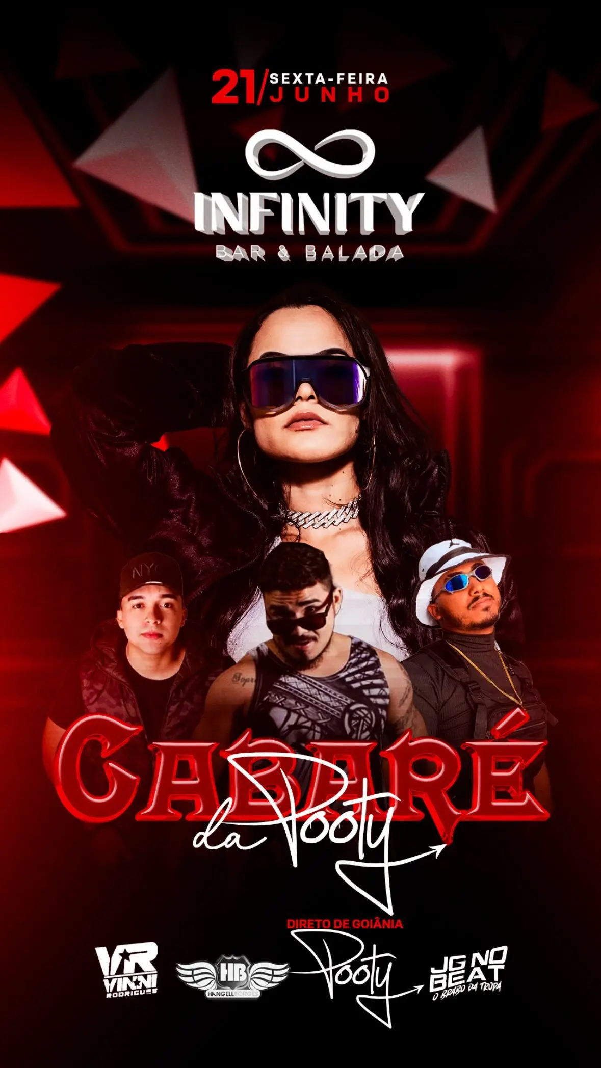 A Infinity segue com dois ambientes para quem não aguenta esperar pelo sábado e já quer uma baladinha para a sexta-feira (21), ou para aqueles que não sabem escolher entre dois rolês, a Infinity resolve isso com dois espaços na mesma casa. A estrela da noite vai ser o Cabaré da Pooty pra quem estiver um pouco mais “saidinho”.
