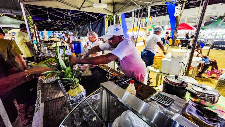 Diversidade gastronômica: Variedade de pratos à base de macaxeira oferecidos pelos comerciantes no Festival da Macaxeira/Foto: Juan Diaz, ContilNet