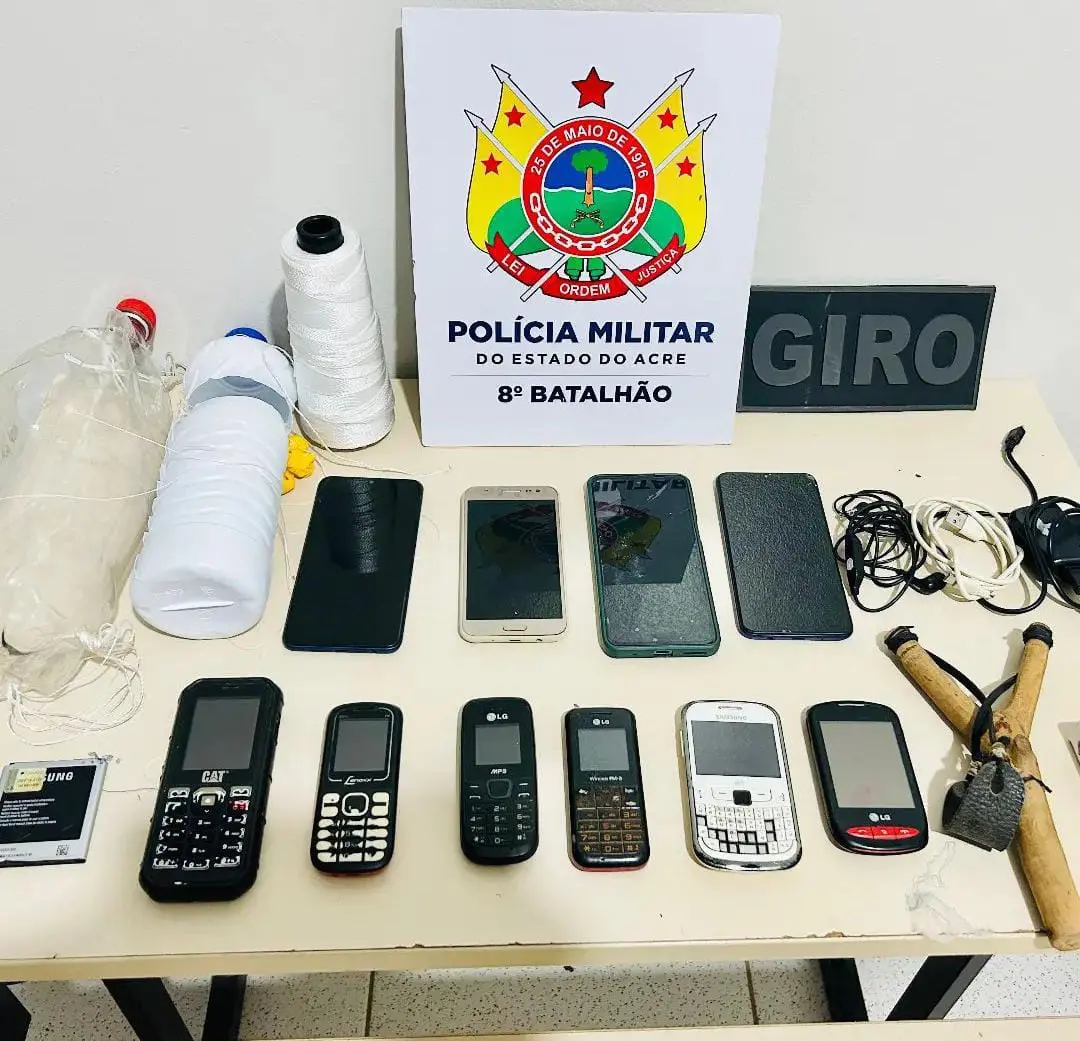 Ao todo, foram apreendidos dez aparelhos celulares de vários modelos, 03 carregadores, 01 bateria de celular e 01 fone de ouvido, além de outros materiais que seriam empregados para lançar os ilícitos para o interior da unidade, como por exemplo: estilingue e linha de náilon. Dos celulares apreendidos, seis são digitais.