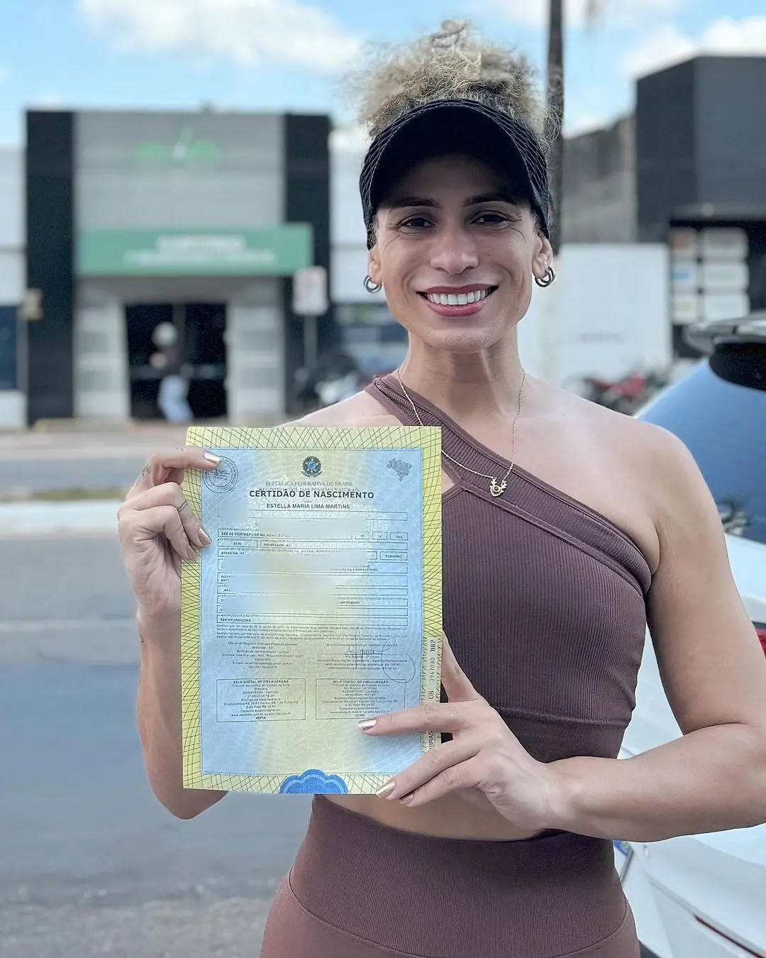 Através do seu perfil, ela divulgou imagens com seu documento retificado e deixou uma mensagem a seus seguidores. “Que dia emblemático pra (re)nascer uma estrela de fato e de direito pra essa nossa sociedade. Duplo orgulho! É o primeiro e mais importante passo pra essa minha longa caminhada. E agradeço a cada um que está comigo direta ou indiretamente. Enfim, retificada! Aqui nasce Estella Maria Lima Martins!”, disse.