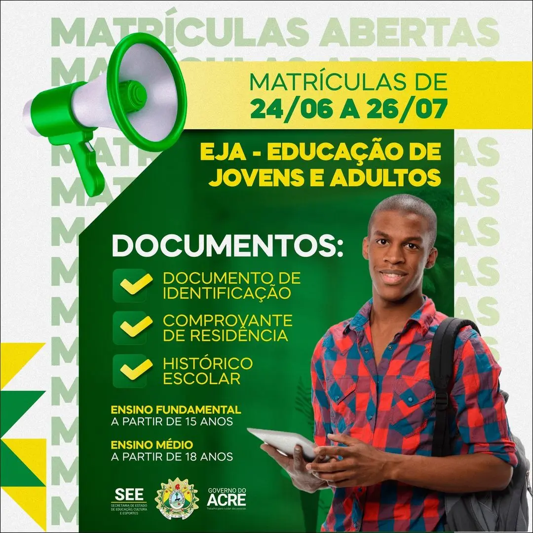 As matrículas para a Educação de Jovens e Adultos (EJA) já estão abertas para o segundo semestre do ano de 2024. O prazo inicia nesta segunda-feira e se estende até o dia 27 de julho.